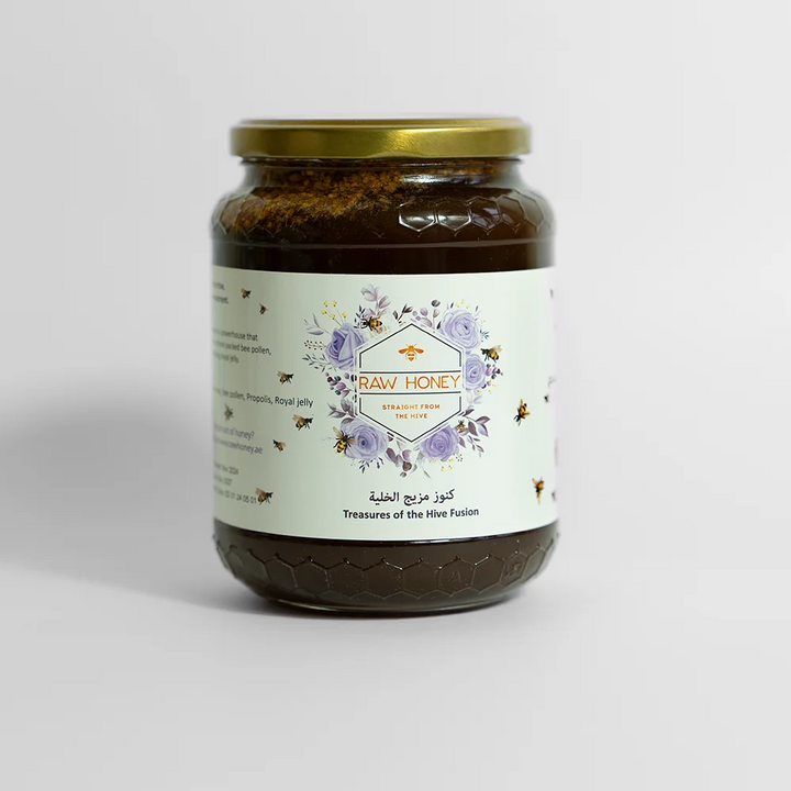"Treasures of the Hive" is a unique honey blend featuring 100% raw wildflower honey, royal jelly, and bee pollen. This exquisite mixture offers a symphony of flavors, combining the sweet notes of wildflowers with the creaminess of royal jelly and the nutritional richness of bee pollen. To enjoy, simply drizzle over breakfast staples like toast or yogurt, add a spoonful to your favorite beverages, or savor it on its own. The versatility of "Treasures of the Hive" makes it a delightful addition to various culinary creations, providing a wholesome and flavorful touch to your daily routine.